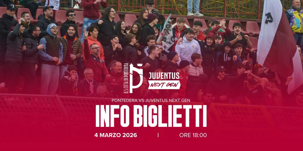 È aperta la prevendita per assistere alla gara Pontedera-Juventus Next Gen, trentesima giornata di Serie C Sky Wifi, in programma mercoledì 4 marzo, ore 18:00, allo stadio Ettore Mannucci. Gradinata Nord a soli 2 euro e sconti sui biglietti ridotti Rettilineo di Tribuna.