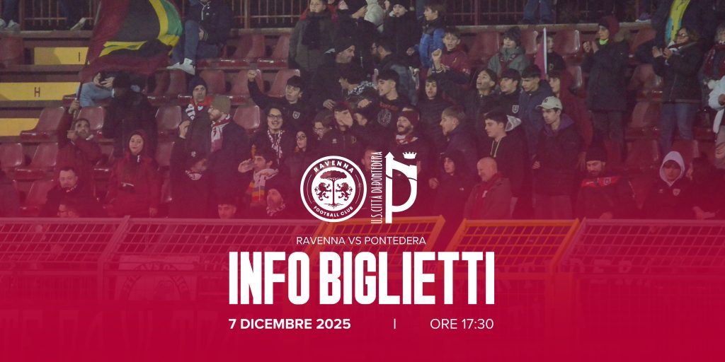 È aperta la vendita dei biglietti per il settore ospiti per assistere alla gara Ravenna-Pontedera, diciassettesima giornata di Serie C Sky Wifi, in programma domenica 7 dicembre, ore 17:30, allo Stadio Bruno Benelli di Ravenna.
